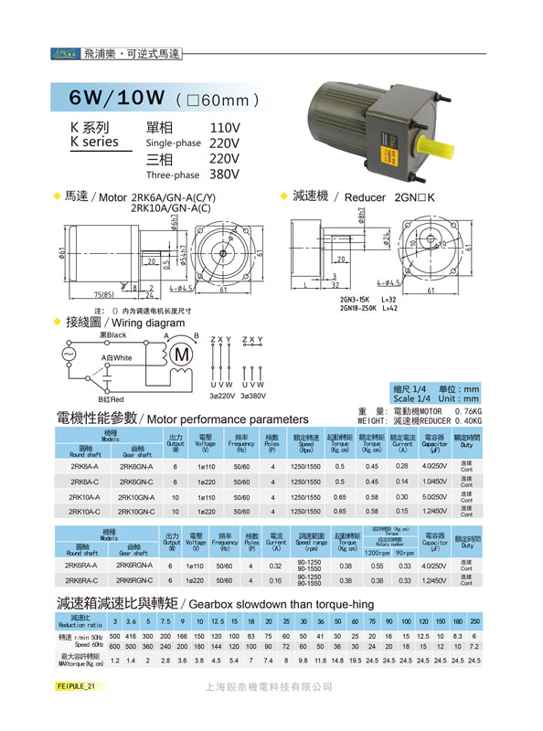 K系列2GN10K可逆式馬達(dá)6W/10W(60mm)