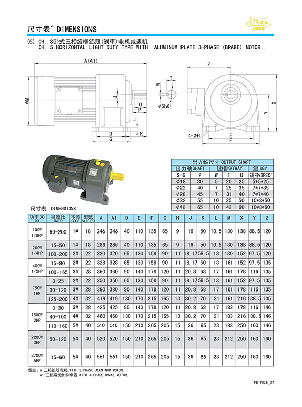CH..S 臥式三相鋁/鐵殼(剎車)電機減速機